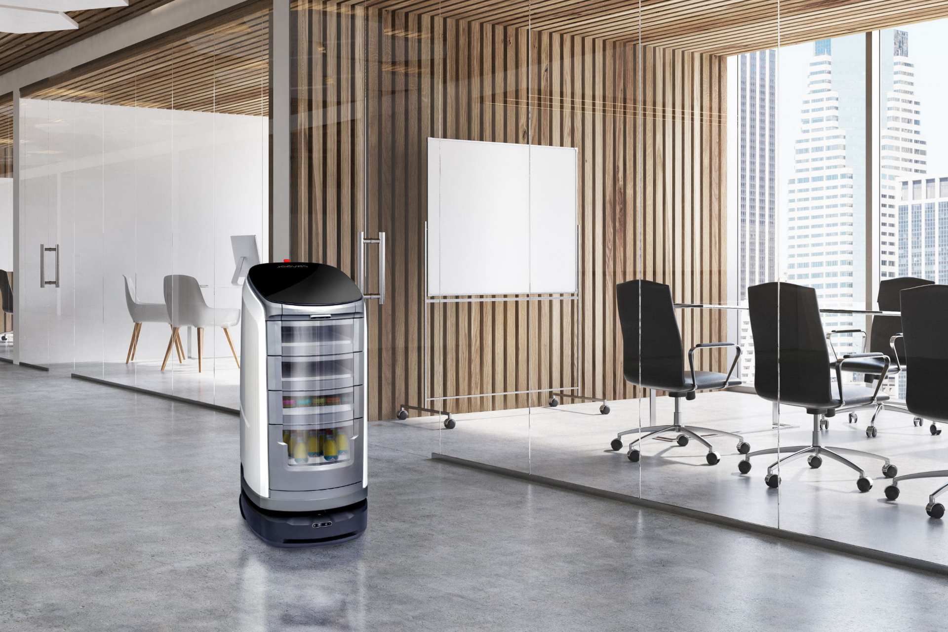 Jeeves ist ein multifunktionaler Roboter-Butler, der für eine exzellente Betreuung und Unterstützung in Hotels, Büros und Gesundheitseinrichtungen sorgt. Er transportiert mühelos Snacks, Getränke oder Post, unterstützt das Personal, indem er immer wiederkehrende Aufgaben übernimmt und somit mehr Raum für hochwertigere Tätigkeiten schafft. Als Minibar, Botenservice oder kontaktlose Lieferoption ist Jeeves schnell, zuverlässig und ausdauernd - sogar über viele Kilometer hinweg.